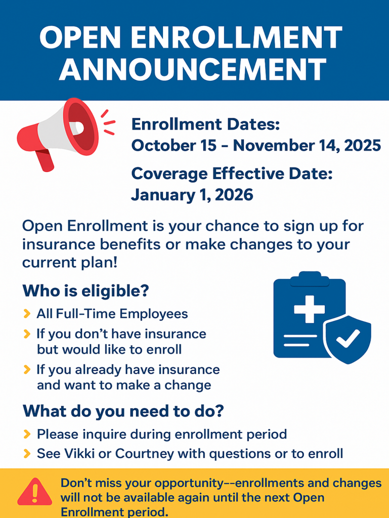 Team Member Update Posted on October 20, 2025October 20, 2025 by ddove Upcoming News Insurance Open Enrollment